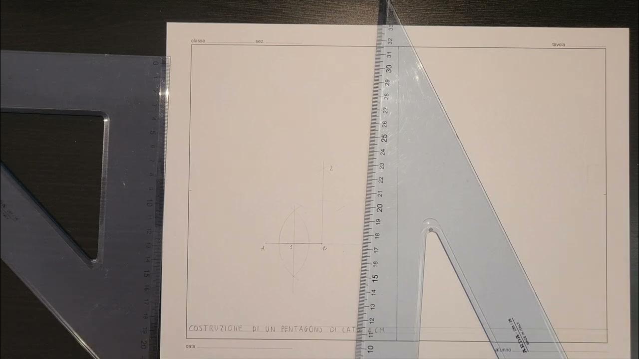 In questo video vi mostro come costruire un pentagono regolare con compasso, squadretta e matita. Pubblicato su richiesta della mia classe che saluto con gra.. Come si fa la costruzione di un pentagono regolare dato il lato. 1. Disegniamo una retta orizzontale e riportiamo su di essa il segmento AB che sarà anche il lato del nostro pentagono.. Aprendo il compasso con la misura del lato del pentagono tracciamo due archi puntando su A e su F: il punto di intersezione G è un vertice del pentagono.