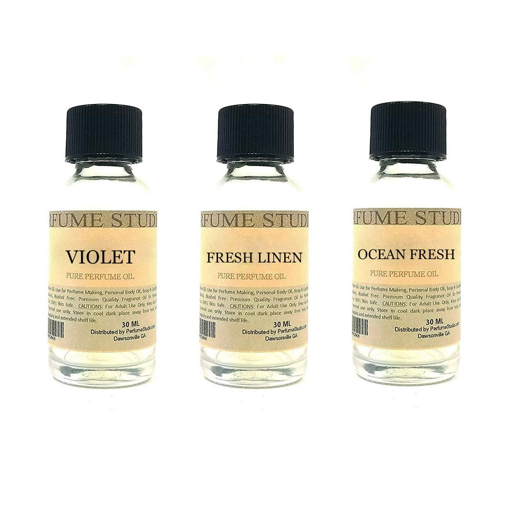 Perfume Studio Fragrance Oil Set 3Pk 1 oz Each Fresh Floral ( Violet, Fresh Linen, Ocean Fresh